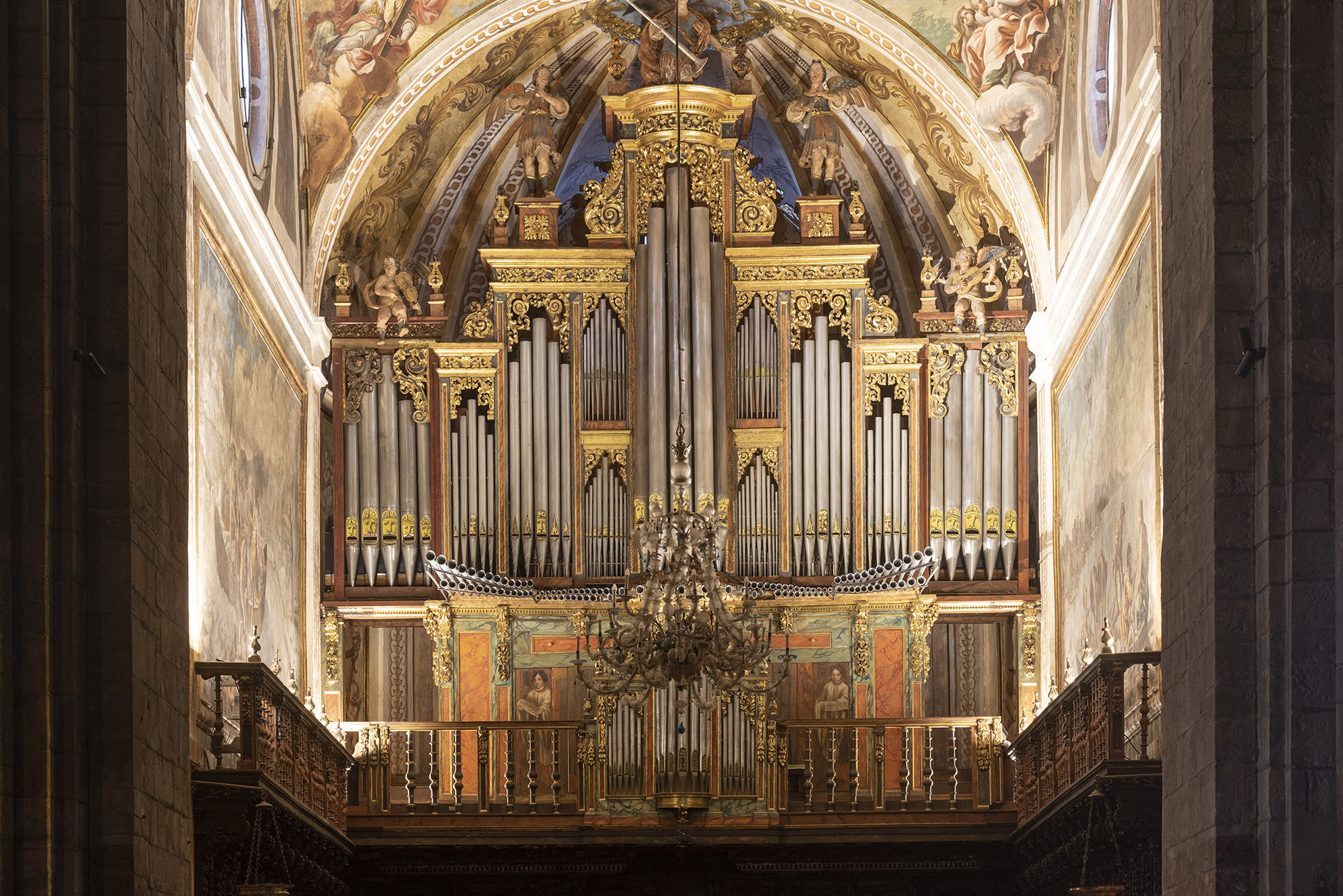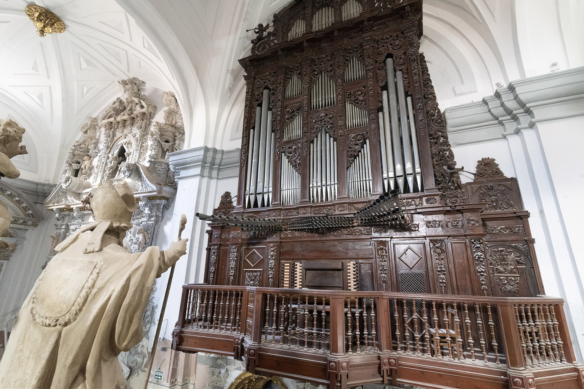 Levantada sobre la pequeña iglesia románica primitiva, se trata de un interesante ejemplo de arquitectura del gótico tardío en el Alto Aragón. Presenta una planta rectangular con cabecera absidial poligonal de siete lados y una sola nave dividida en dos tramos; al primer tramo abren dos capillas laterales, y a los pies, se adosa la torre campanario. Al exterior se observa la fábrica de mampostería con una volumetría simple en la que destaca el juego plástico introducido por los grandes y acusados contrafuertes de la nave, entre los que se sitúan las capillas laterales y los vanos apuntados de iluminación. En el muro sur está emplazada la portada principal adintelada sobre la que se coloca un crismón en bajorrelieve de más de un metro de diámetro, perteneciente al tímpano de la antigua iglesia románica. Al interior llama la atención el complejo sistema de abovedamientos: la cabecera absidial se cubre con una bóveda estrellada de piedra labrada que arranca de una imposta corrida en la que aparecen ángeles tenentes con escudos como apoyo de los nueve nervios que confluyen en el florón central de la bóveda. Los tramos van cubiertos con bóvedas estrelladas que se apoyan en arcos formeros sensiblemente rebajados; los nervios de las bóvedas apean en ménsulas embebidas en el muro. Al primer tramo abren dos capillas en arco apuntado apoyado sobre capiteles esculpidos con motivos antropomórficos; la capilla del lado de la Epístola corresponde a la de la Virgen del Pilar (antes conocida como capilla de Santa María) y presenta planta rectangular cubierta con bóveda de crucería simple; reconstruida el siglo pasado no presenta ninguna decoración digna de destacar y se abre a la nave con arco de medio punto. La del lado contrario, la capilla de la Virgen de las Nieves (antes de la Virgen del Rosario), muestra planta pentagonal al interior y va cubierta con bóveda de crucería de seis nervios con nervio transversal. Esta capilla de la Virgen de las Nieves, situada en el muro sur, se abre con arco apuntado que se compone con dos columnas de piedra labrada con motivos antropomórficos de factura románica. En el interior de esta misma capilla los nervios de la bóveda se apoyan en unos capiteles con motivos animales. Sobre el tramo de los pies se sitúa el coro elevado, de construcción más reciente que el resto de la fábrica, y estructura a modo de pasarela, de anchura inferior al tramo de los pies. En las claves de la bóvedas aparece el escudo de armas de Juan de Lanuza, mecenas de esta construcción. A los pies y con acceso desde el último tramo de la nave se halla la torre campanario de planta cuadrada y tres cuerpos en altura; presenta características similares a las de otras torres de la zona.